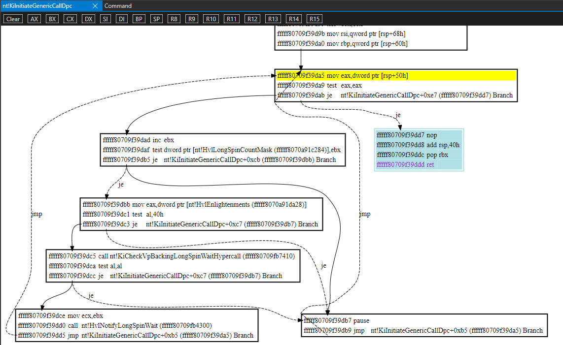The value in rsp+50 gets decremented by each core after processing the DPC dispatched to them. This value was 1 (1 core left not finished).