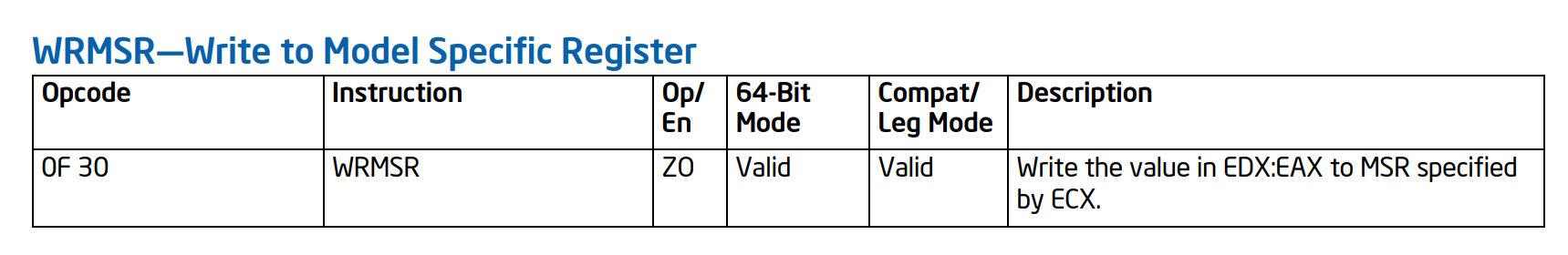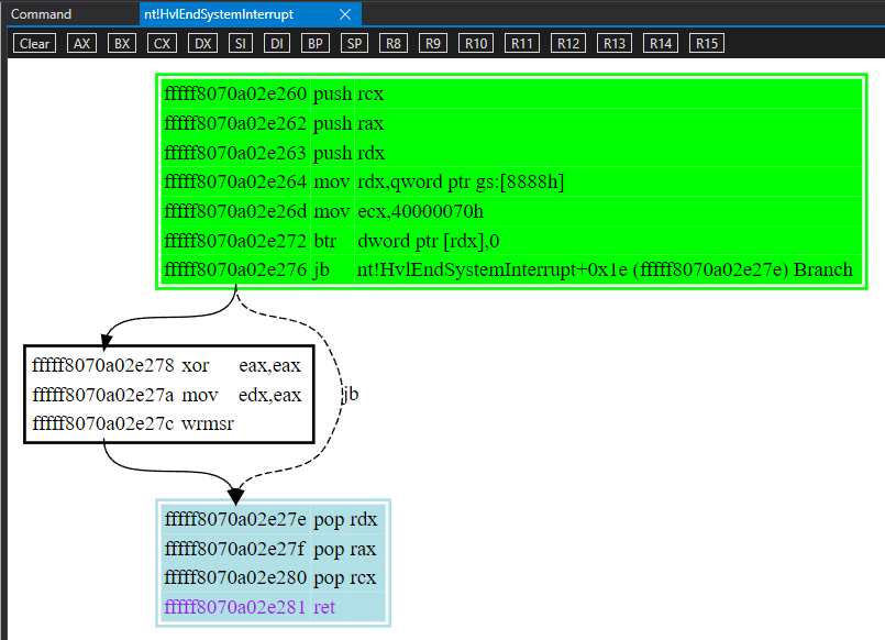 This looks really simple, one particular interesting bit is the wrmsr instruction. This writes to the MSR of the CPU