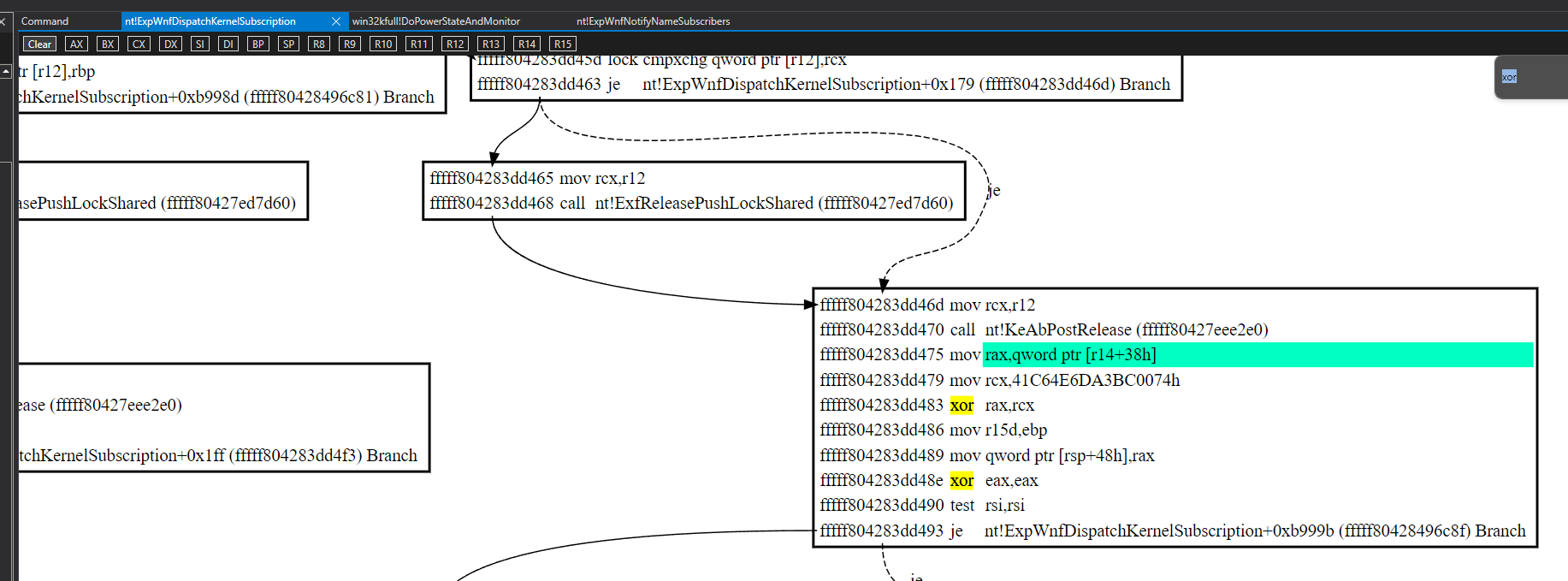 The mask used can also be found by disassembling nt!ExpWnfDispatchKernelSubscription . It is 0x41C64E6DA3BC0074.
