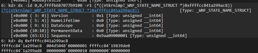 6: kd> dt nt!_WNF_NAME_INSTANCE ffffcc84`1a299aa0