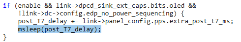 In dce110_edp_backlight_control, we request a wait of “post_T7_delay”. This wait was never satisfied before system BSOD 0x19C.