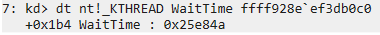 Since this is a mini kernel dump, we do not have KUSER_SHARED_DATA to immediately tell us the current tick count. But OS actually stores interrupt time in the header of dump file, and it is derived by tick count. For your dump file, it is the value of “0000005a`60dc49e1”